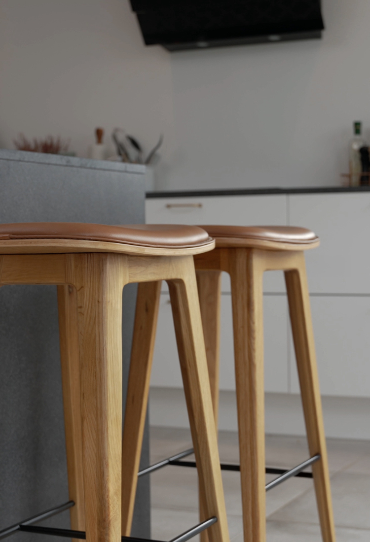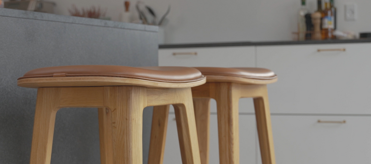 Wir verwenden SPOOR-Leder für all unsere Lederprodukte, einschließlich Esszimmerstühle, Sitzsäcke und Barhocker.