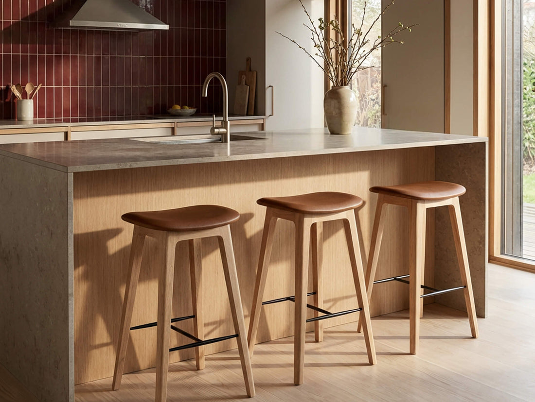- Barhocker aus Holz verleihen Wärme und einen zeitlosen, nordischen Ausdruck