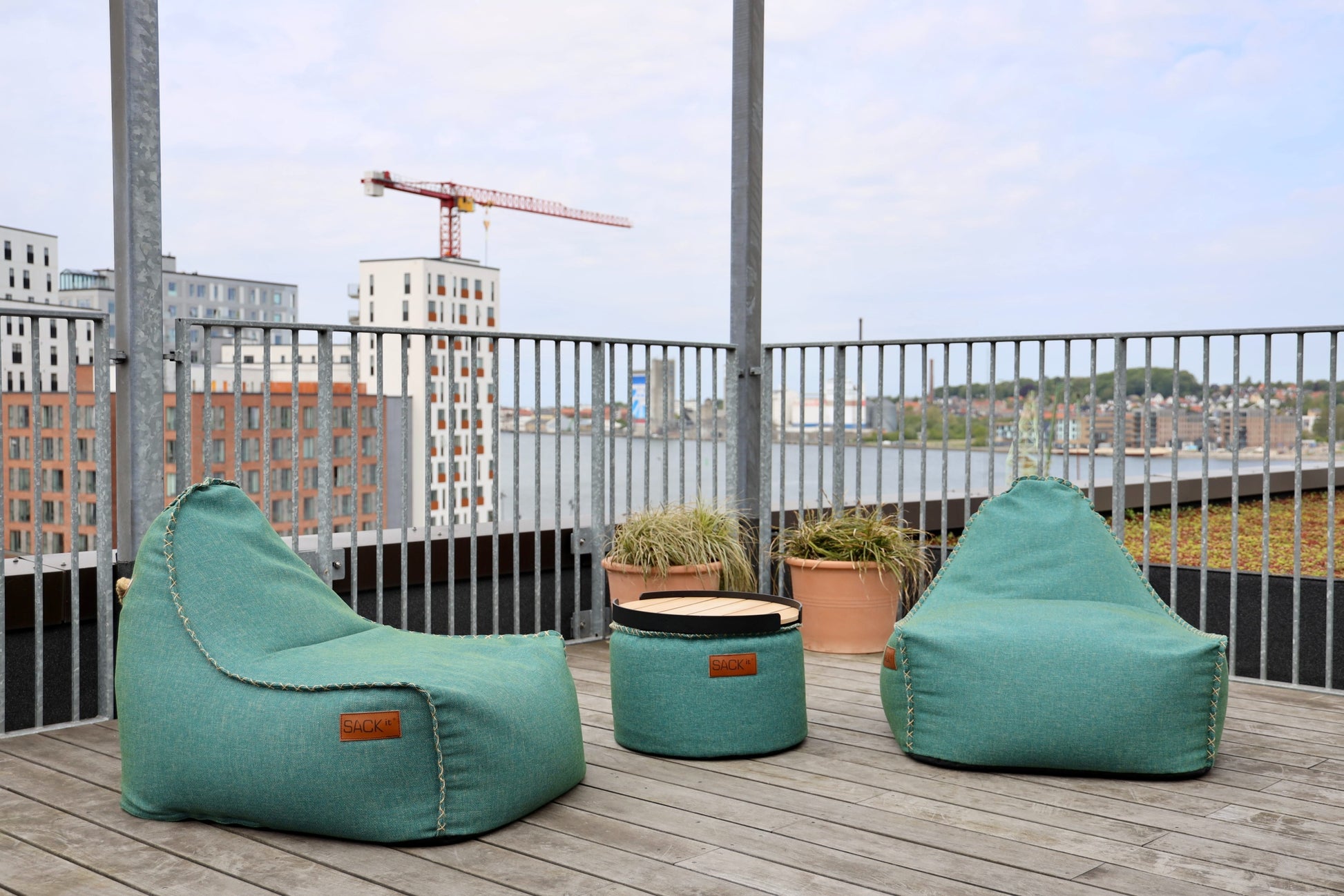 Auf der Dachterrasse und im Orangerie von Rare Wines laden unsere Sitzsäcke zu ruhigen Momenten mit Panoramablick über Fjord und Stadt ein. Die weichen Formen runden die scharfen Linien der Kontraste ab und schaffen eine einladende Oase, in der sich eine gute Tasse Kaffee vollkommen anfühlt.
