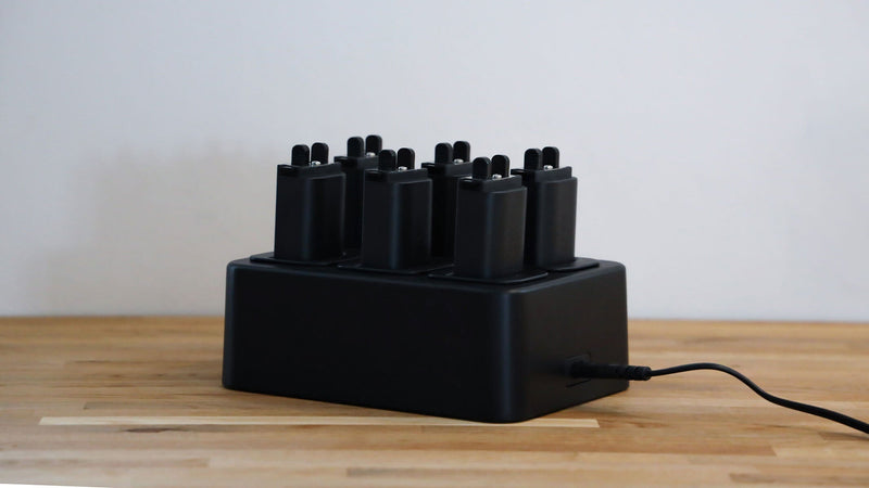 Mit der Battery Charging Station müssen Sie Ihre SACKit Light-Akkus nicht mehr per Kabel aufladen. Legen Sie die Akkus einfach in die Ladestation - und die Akkus laden sich auf.