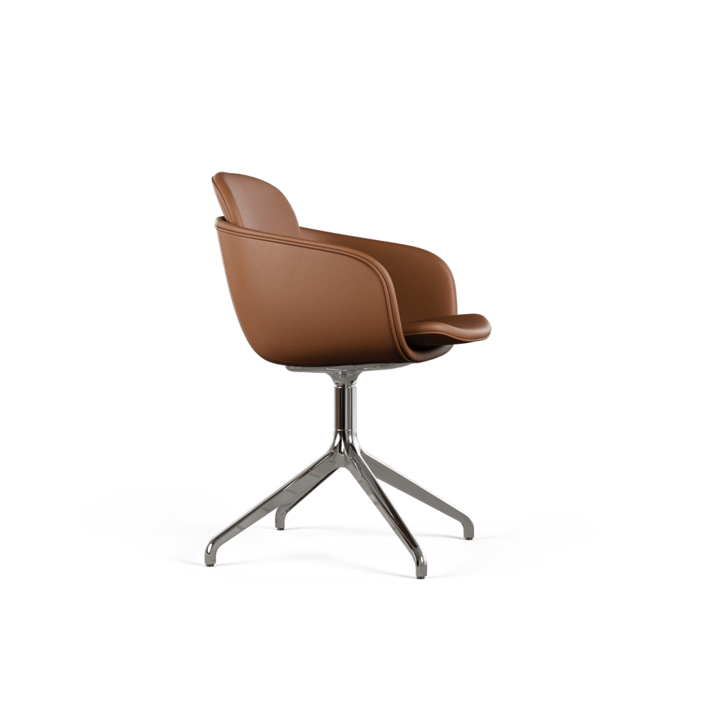 Der Chair no. One S2 knüpft an dieselbe Formensprache und Materialwahl wie S1 an, ist jedoch mit zwei Schalen aufgebaut, die zusammen einen stärker umschließenden Ausdruck und erhöhten Komfort bieten. Der Stuhl ist mit nordischem, rückverfolgbarem Leder von SPOOR gepolstert und für lange Mahlzeiten und viele Stunden am Esstisch konzipiert.