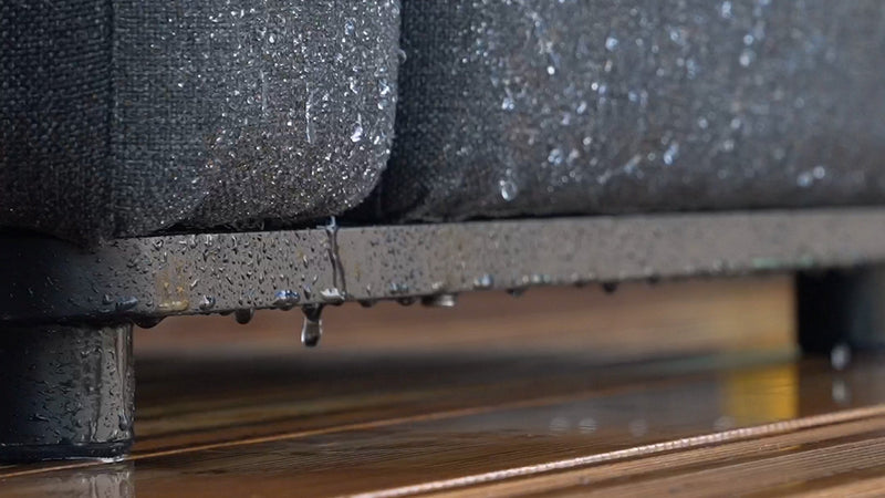 Ja tut es. Der Bezug besteht zu 100% aus der syntetischen Faser Olefin, welche Stockflecken bei Feuchtigkeit verhindert. Quick Dry Foam im Sofa sichert ein schnelles Trocknen.
