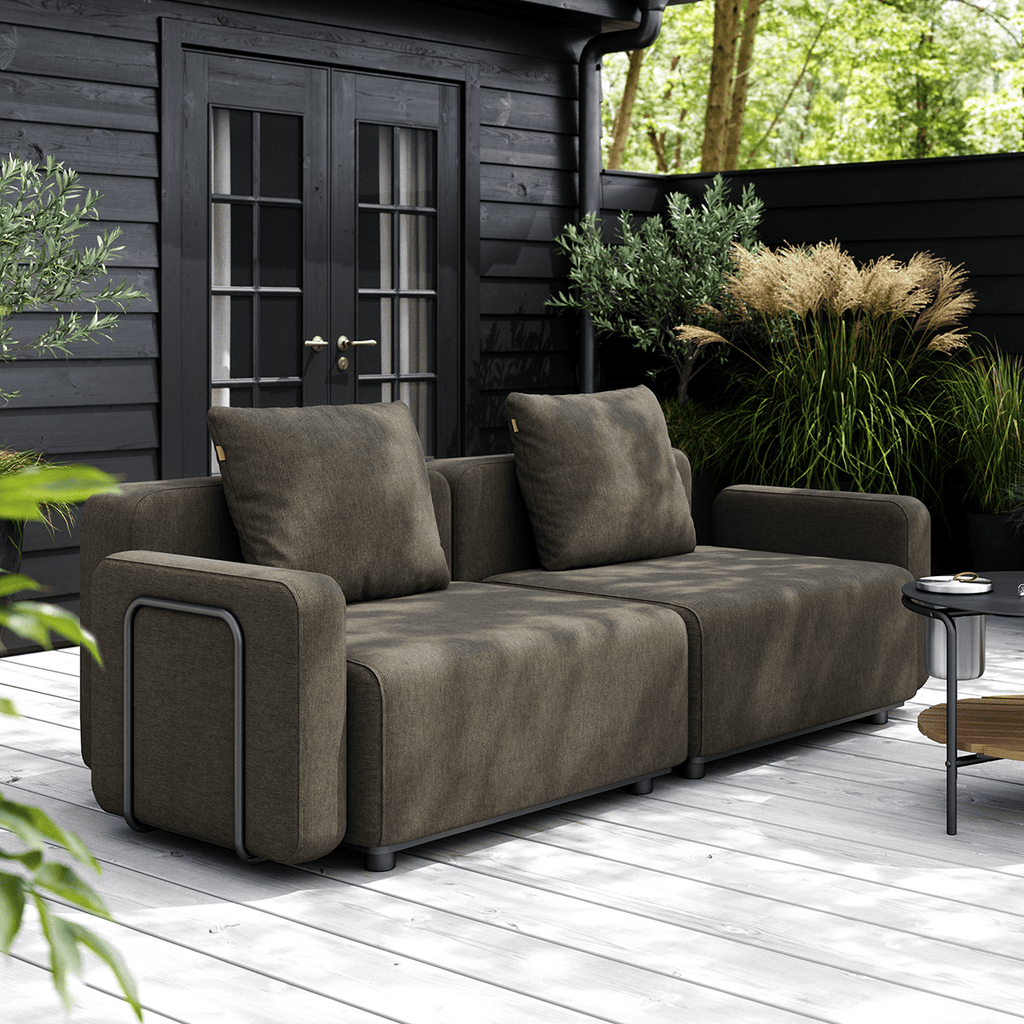 Cobana Lounge Sofa ist ein modular aufgebautes Outdoor-Sofa mit ruhigem, erwachsenem Ausdruck und klaren skandinavischen Linien. Entworfen in Dänemark mit Fokus auf Langlebigkeit, Funktion und eine Formensprache, die sich natürlich in private Gärten, Terrassen und größere Außenbereiche einfügt. Das Sofa lässt sich frei zusammenstellen und an den Außenbereich anpassen, sowohl als klassisches Lounge-Setup als auch als Teil eines Outdoor Lounge Dining-Bereichs.