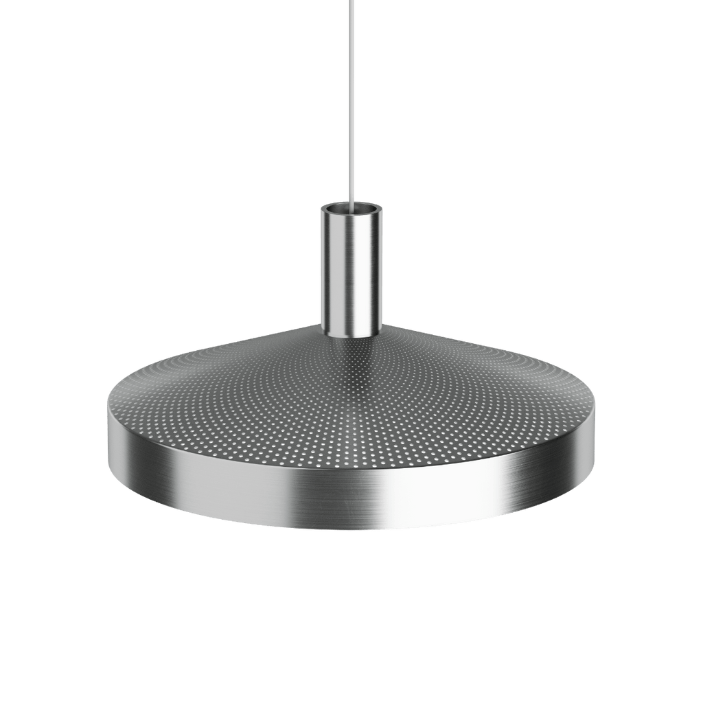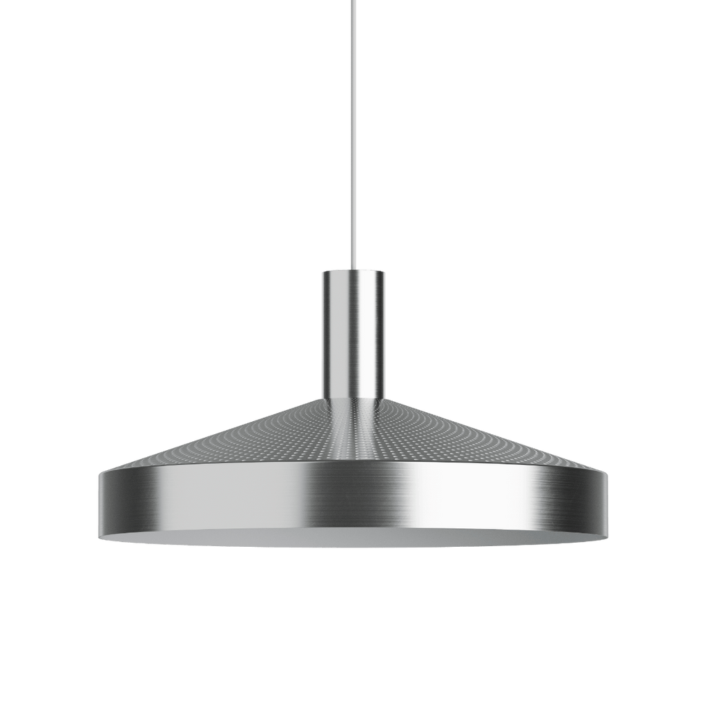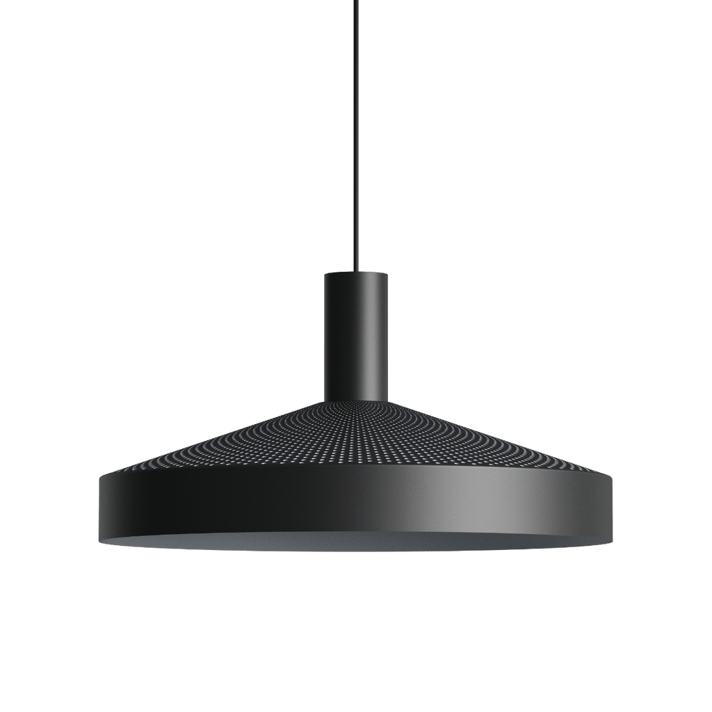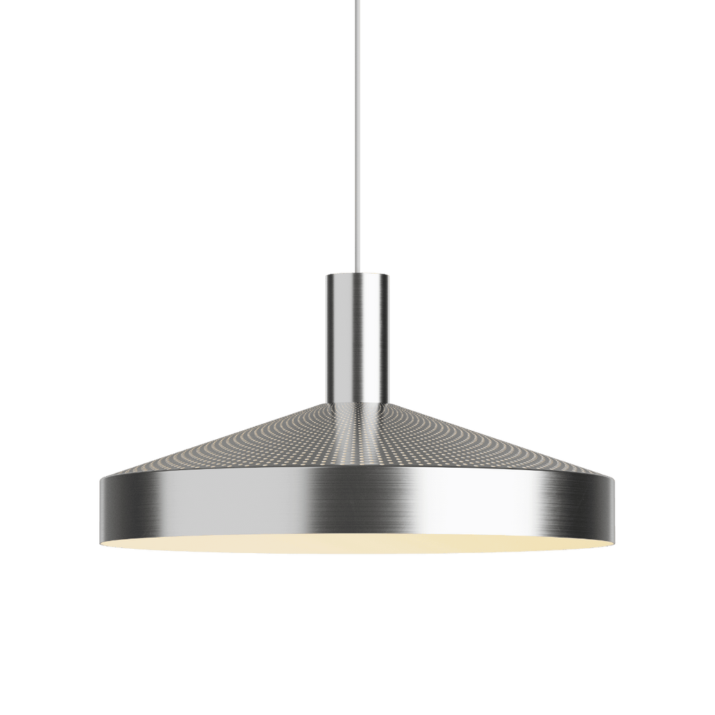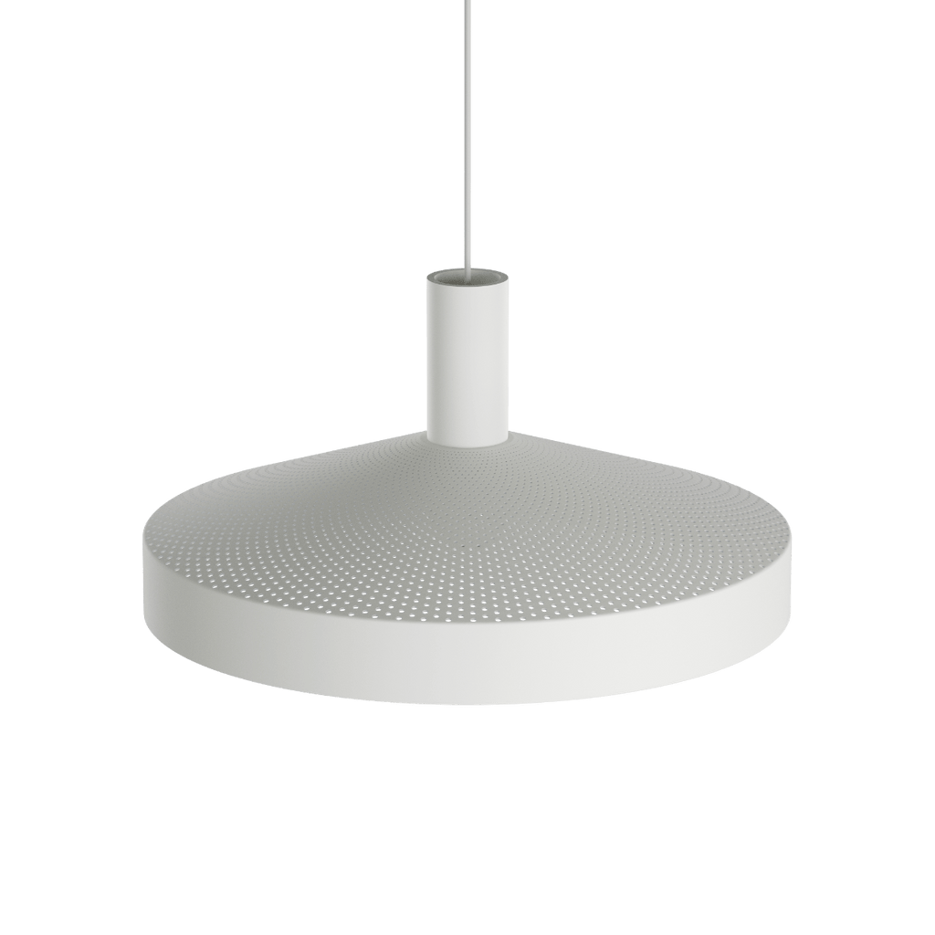 Die Dawn-Hängeleuchte ist von der klassischen Werkstatt-Hängeleuchte inspiriert und verfügt über eine lasergeschnittene Perforation im oberen Bereich, die für eine komfortable und großzügige Beleuchtung sorgt. Die funktionale Beleuchtung der Leuchte wird durch den weiß lackierten Innenschirm und die integrierte Lichtquelle verstärkt. Der markante Knick am Rand der Leuchte lenkt das Licht präziser, während die Perforationen sowohl nach oben als auch nach unten gerichtetes Licht ermöglichen.