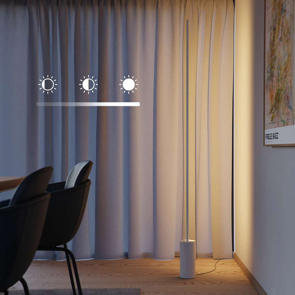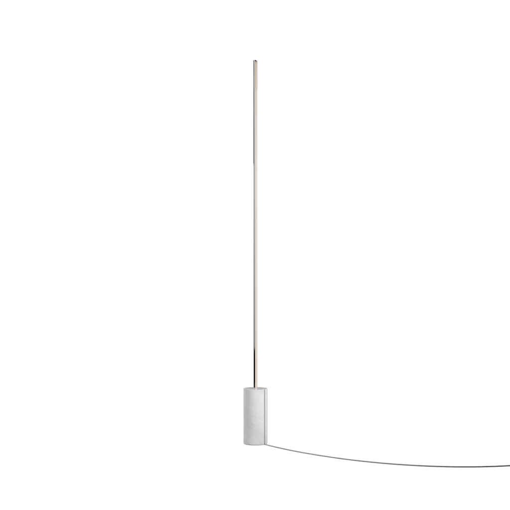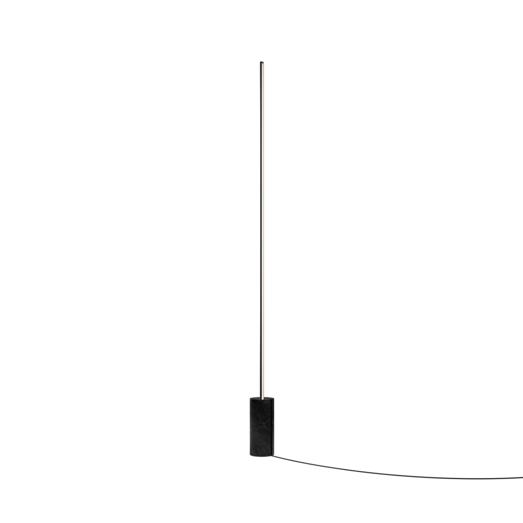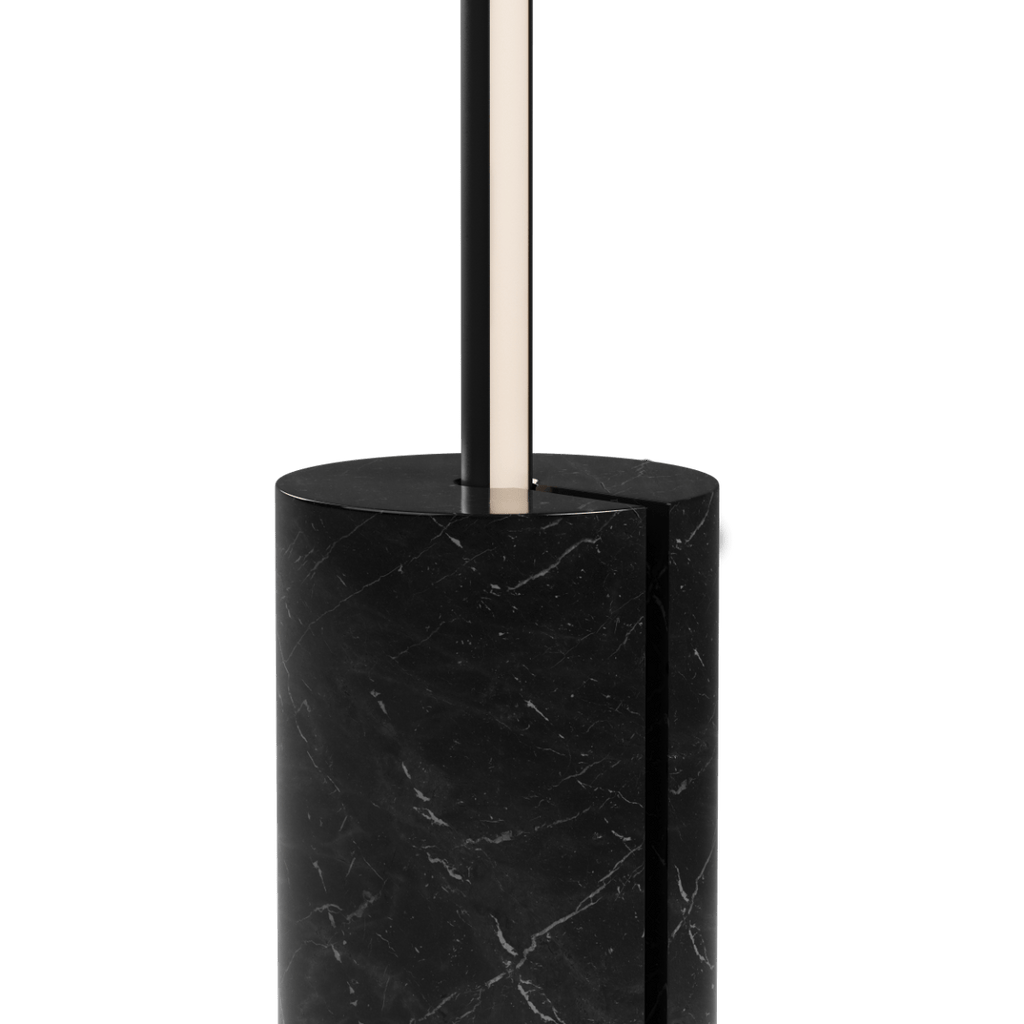 Funktionalität vereint. Das schlanke Aluminiumprofil und der stilvolle Marmorsockel der Leuchte werden mit einem vertikalen, mattierten LED-Streifen kombiniert, der ein weiches, nach oben gerichtetes Licht für einen einfachen und minimalistischen Look erzeugt.