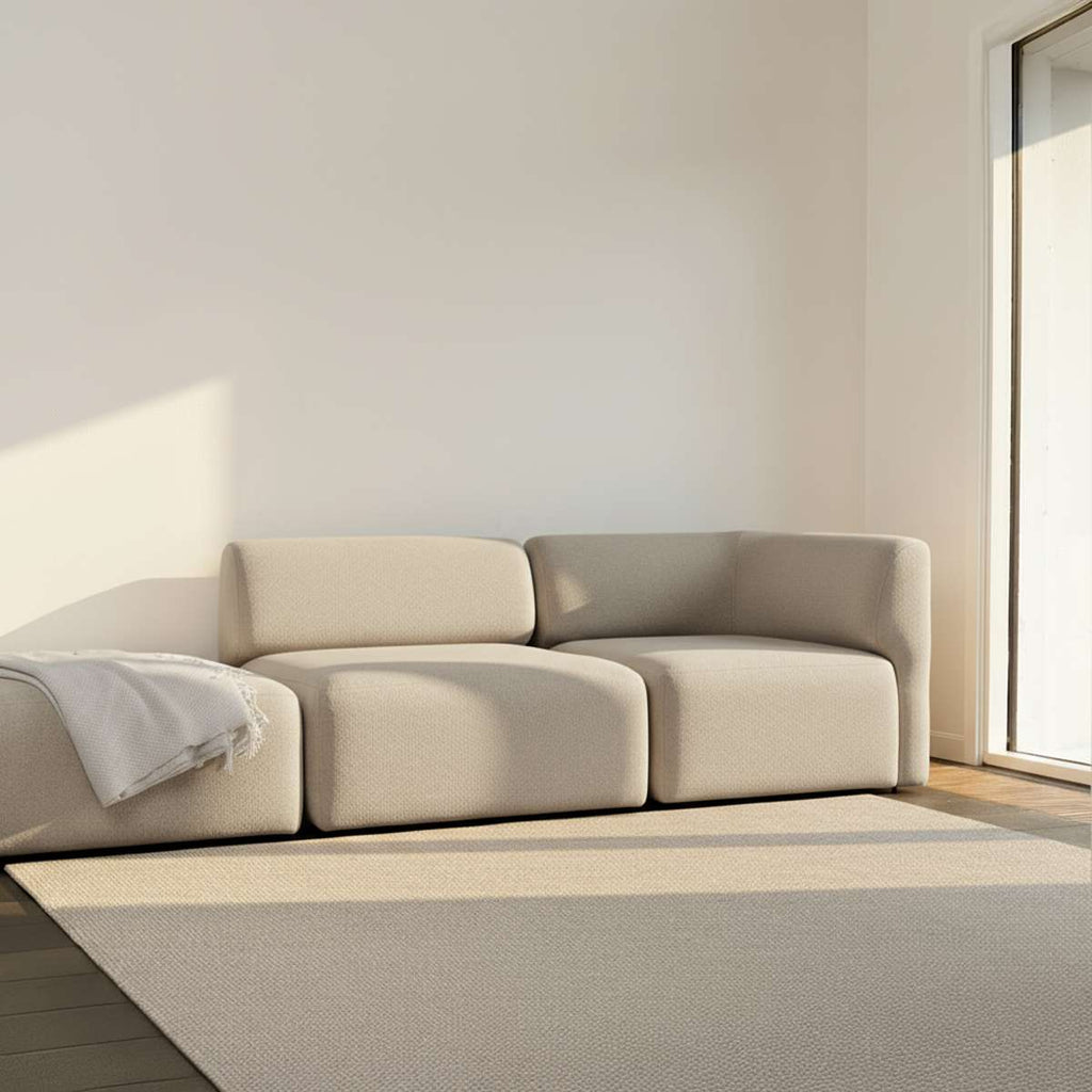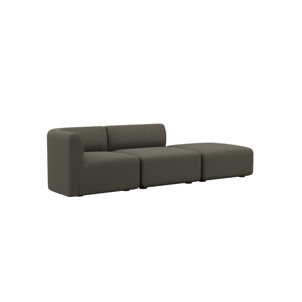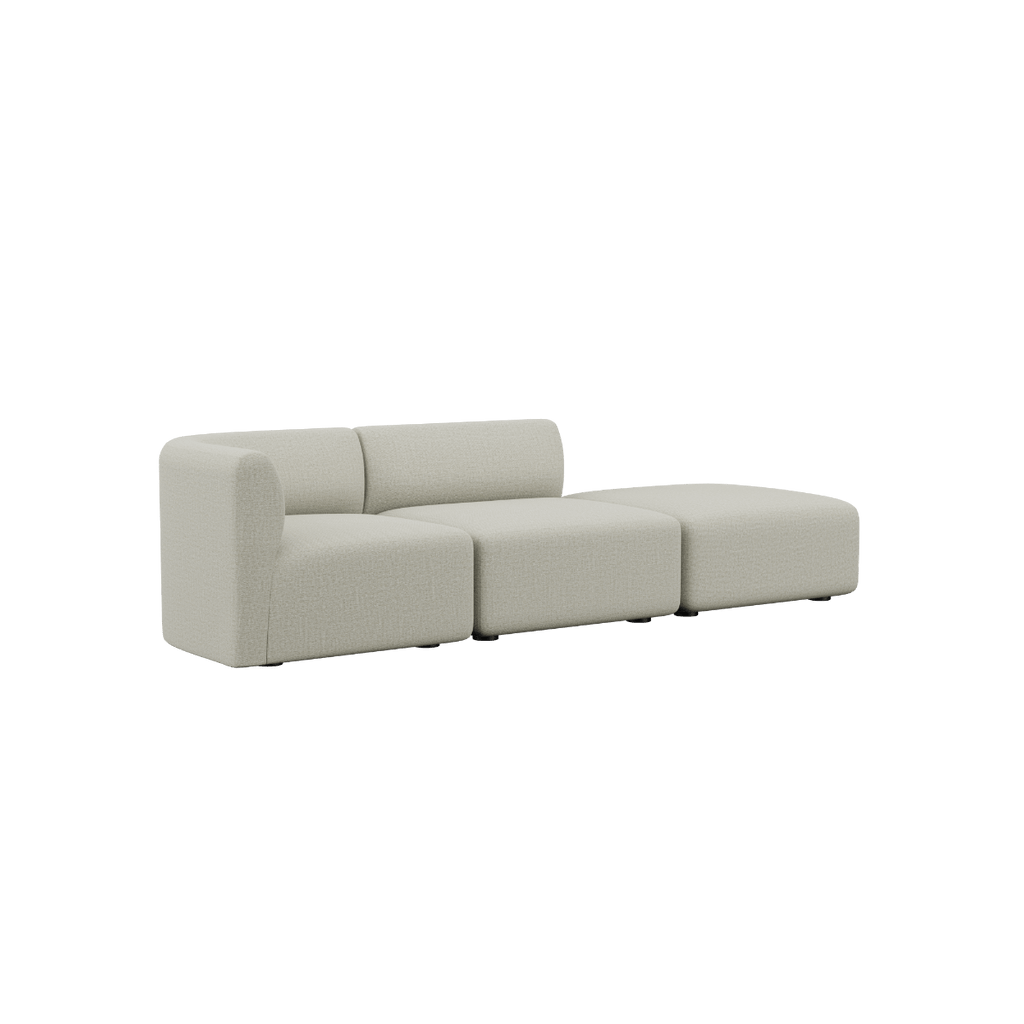 Außerdem kann der Pouf auf beiden Seiten des Sitzmoduls angebracht werden, so dass ein offenes Ende-Sofa entsteht.