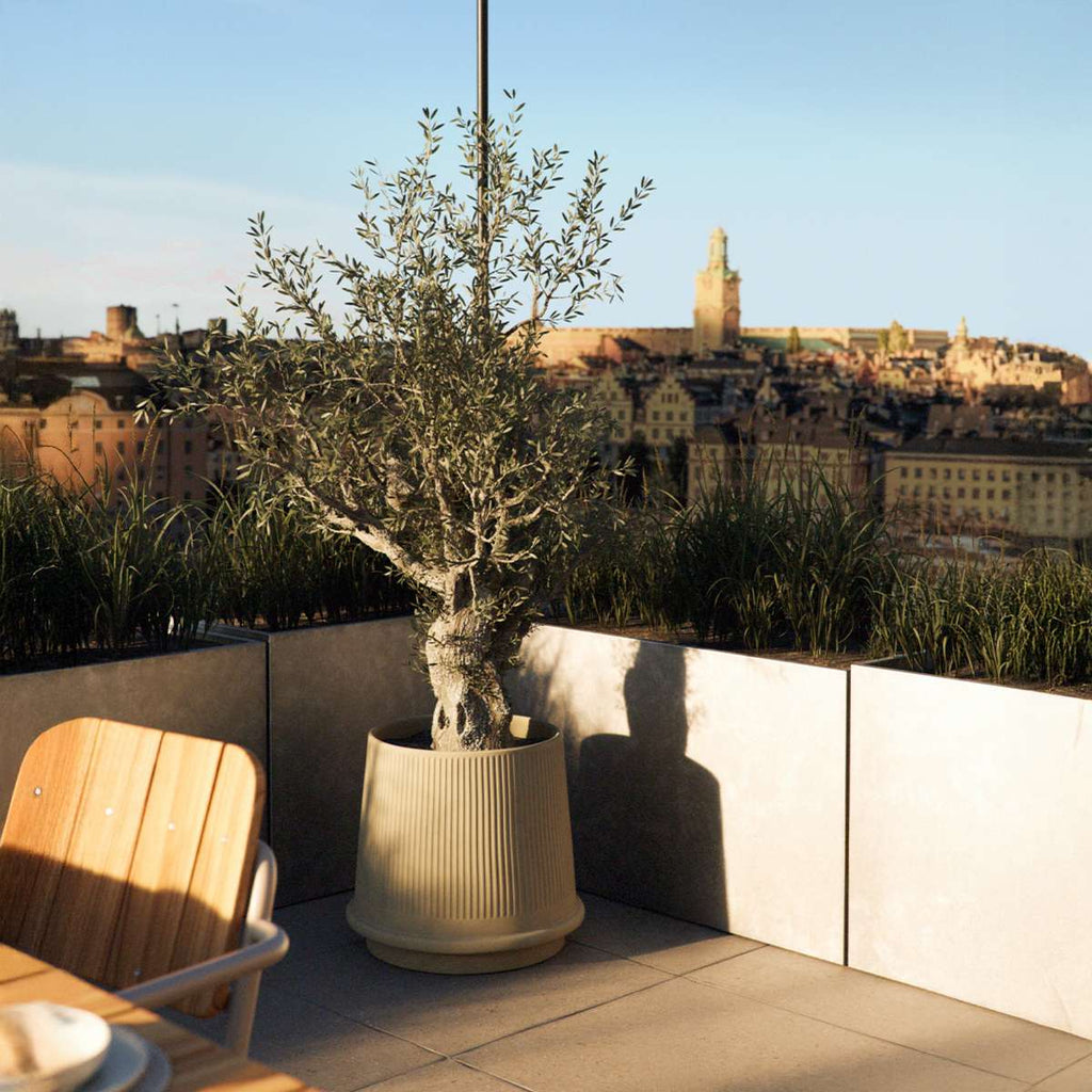 Gaia ist in drei erdigen Farben – Sand, Olive, Mocca – und in drei Größen erhältlich, die sich beliebig kombinieren lassen. So schaffen Sie sowohl visuelle Harmonie auf Balkon oder Terrasse als auch optimale Bedingungen für Ihre Pflanzen – ganz gleich, welche Größe.