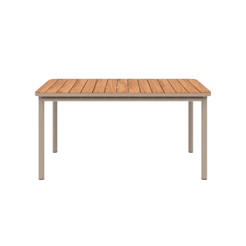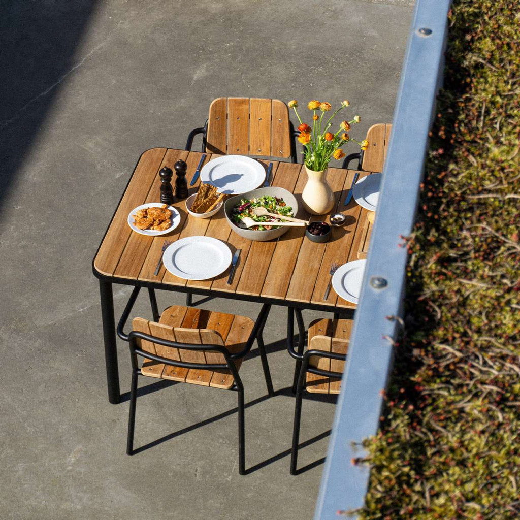 Der Kirra Dining Table ist ein Esstisch für den Außenbereich aus pulverbeschichtetem Aluminium und FSC®-zertifiziertem Teakholz (FSC® C190311). Das Gestell aus Aluminium ist leicht und rostet nicht, während das Teakholz dem Tisch eine wunderbare Wärme verleiht und mit der Zeit eine natürliche Patina annimmt.