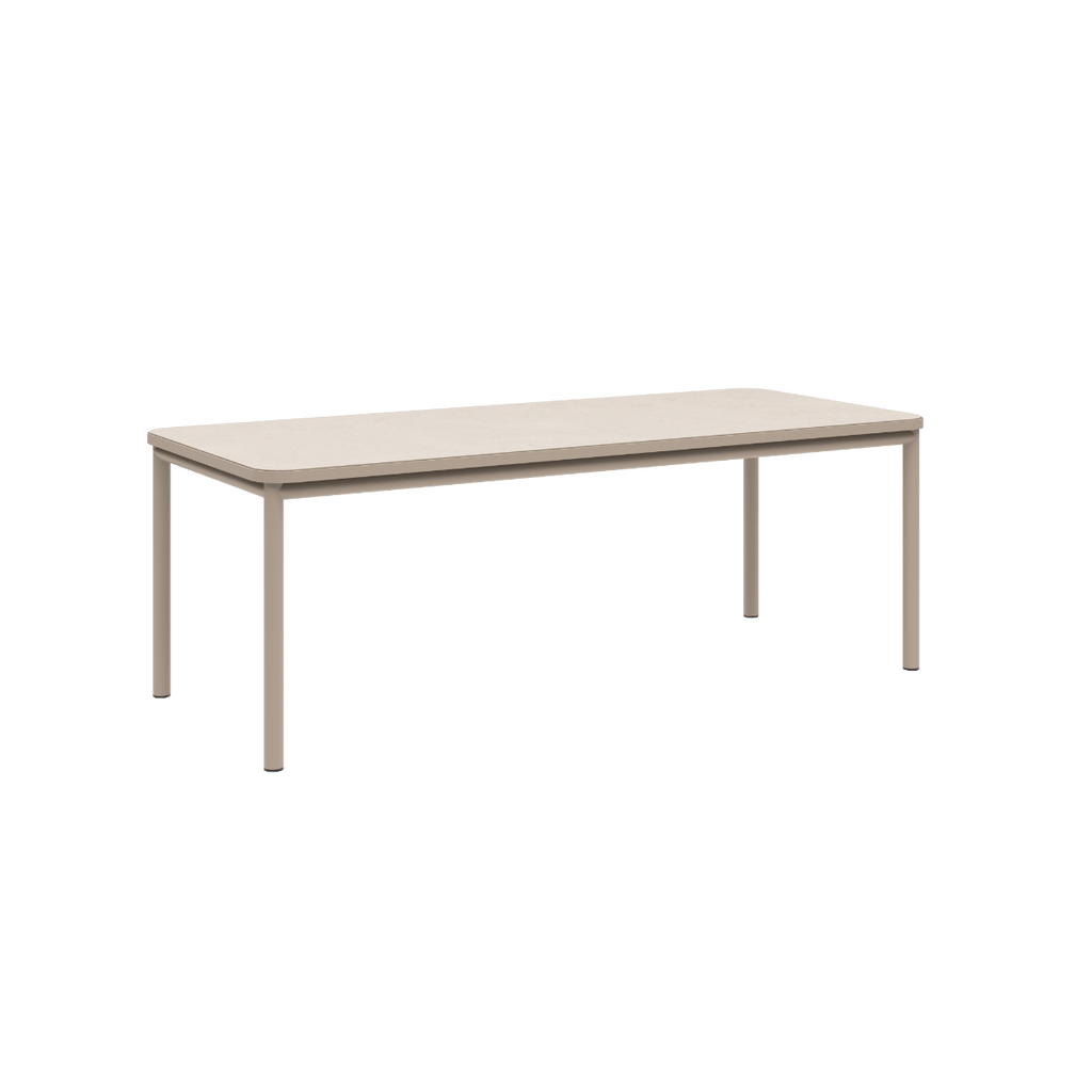 Der Kirra Dining Table ist der perfekte Esstisch für den Außenbereich, der mit seiner Kombination aus pulverbeschichtetem Aluminium und einer eleganten Keramikplatte besticht. Das Aluminium sorgt für Leichtigkeit und macht ihn rostfrei, während die Keramikplatte ihm eine natürliche, warme Ausstrahlung verleiht.