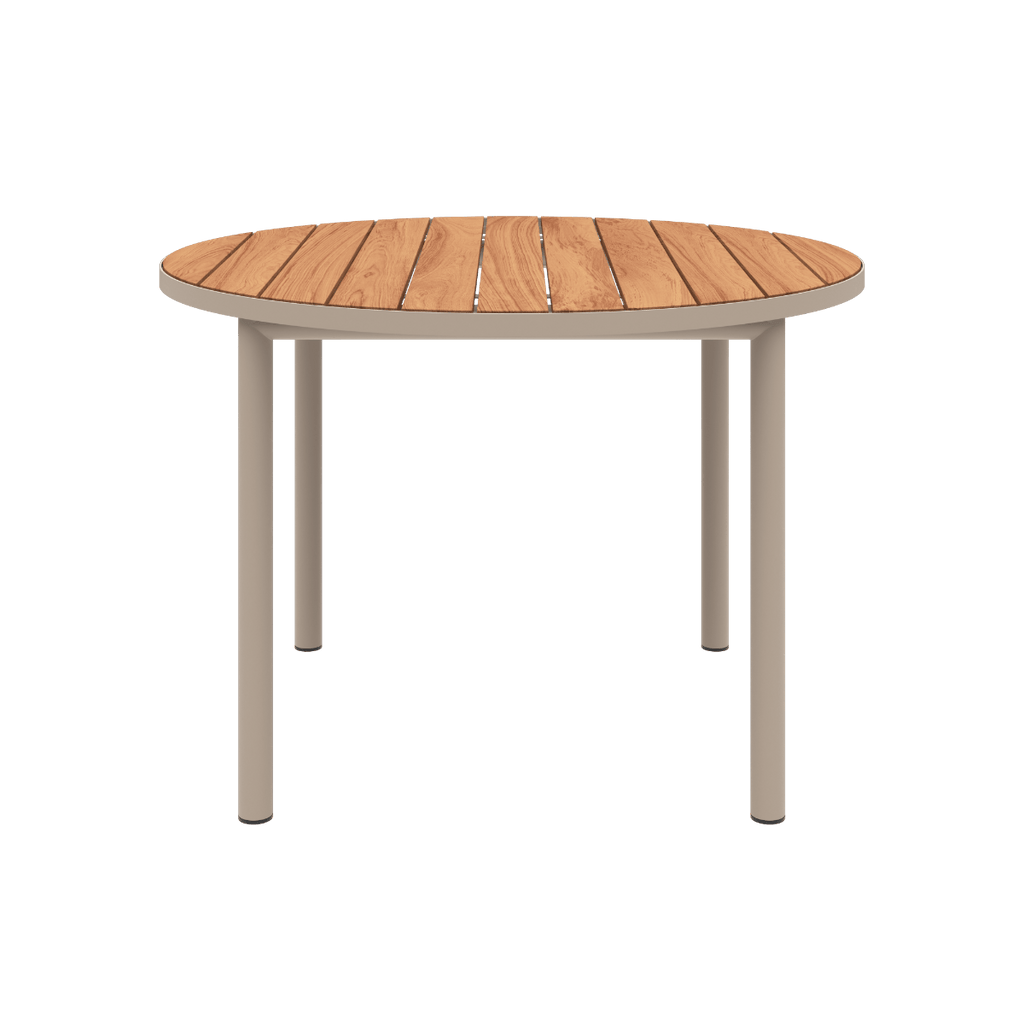 Der Kirra Dining Table ist ein Esstisch für den Außenbereich aus pulverbeschichtetem Aluminium und FSC®-zertifiziertem Teakholz (FSC® C190311). Das Gestell aus Aluminium ist leicht und rostet nicht, während das Teakholz dem Tisch eine wunderbare Wärme verleiht und mit der Zeit eine natürliche Patina annimmt.