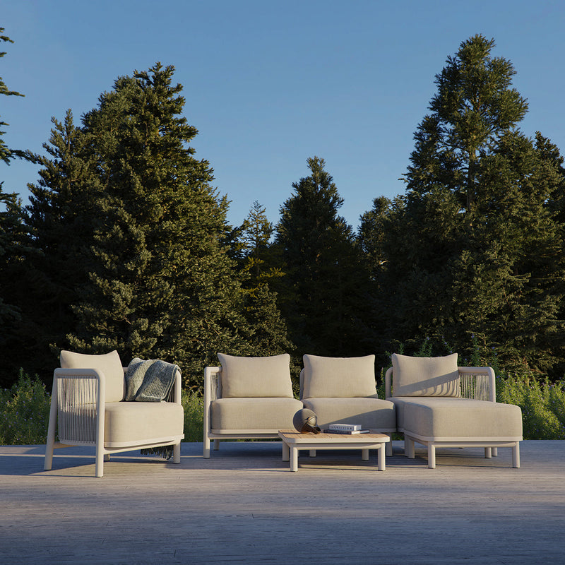 Das Kirra Lounge Sofa schafft den perfekten Platz im Freien, der zweifellos zum Mittelpunkt gemütlicher Momente unter freiem Himmel mit Freunden und Familie wird. Dank des modularen Designs können Sie das Sofa individuell an Ihren Außenbereich und Ihre Bedürfnisse anpassen.
