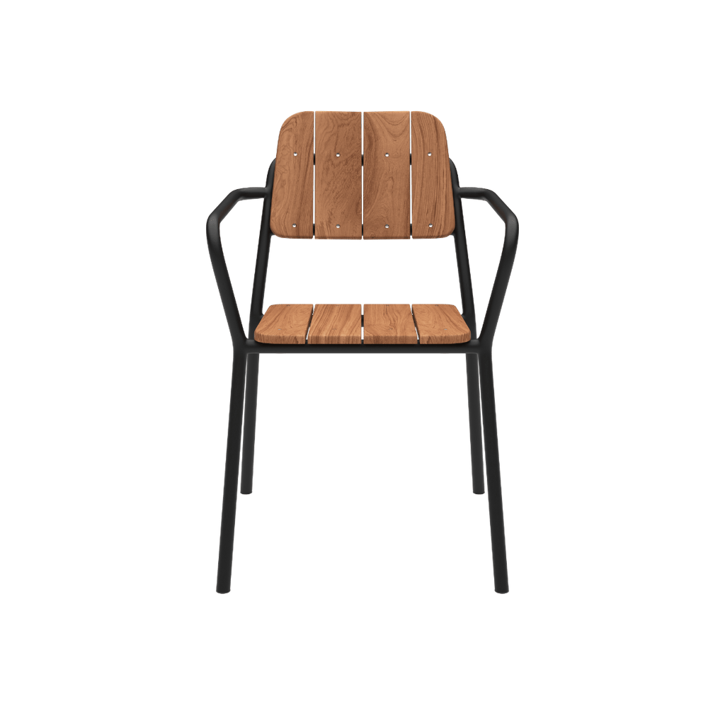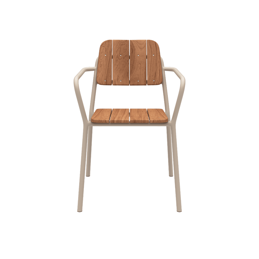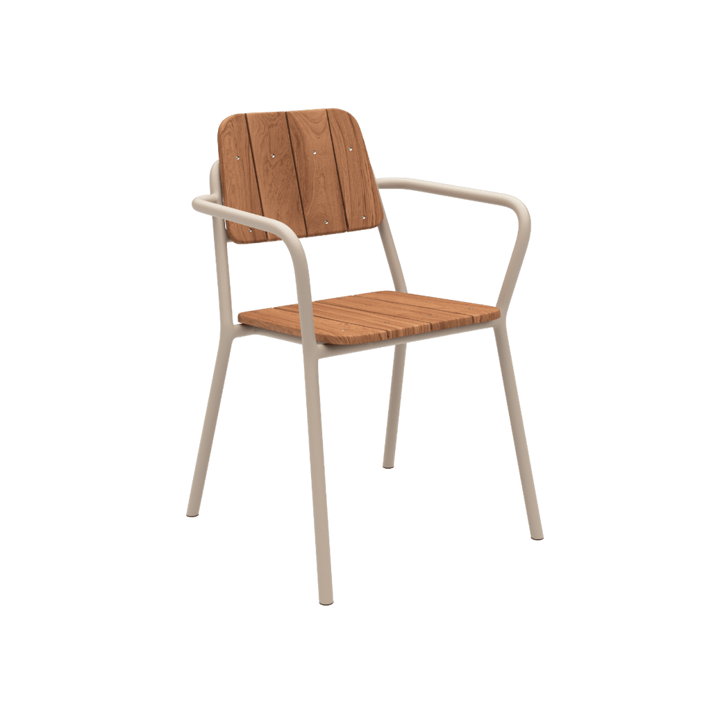 Stapelbarer Terrassenstuhl aus Teakholz und pulverbeschichtetem Aluminium