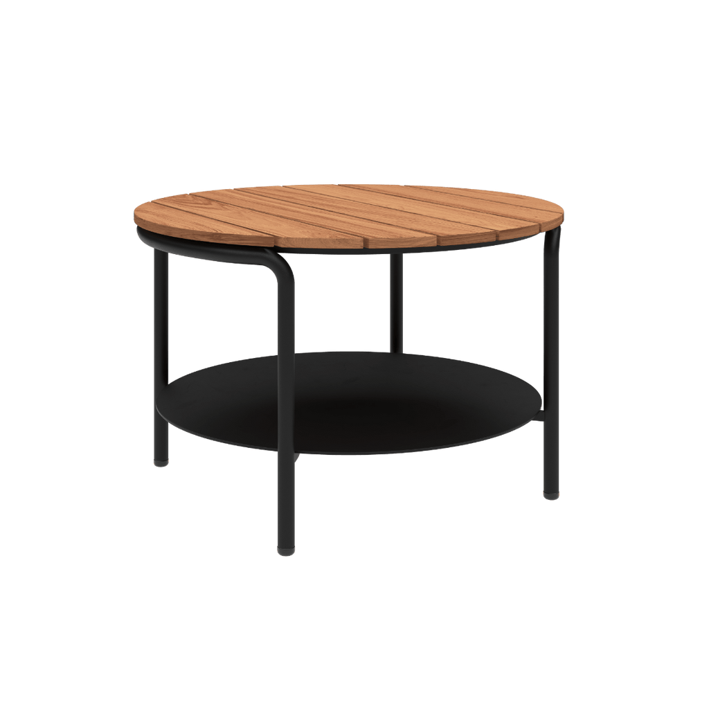 Outdoor-Couchtisch aus pulverbeschichtetem Aluminium und Teakholz