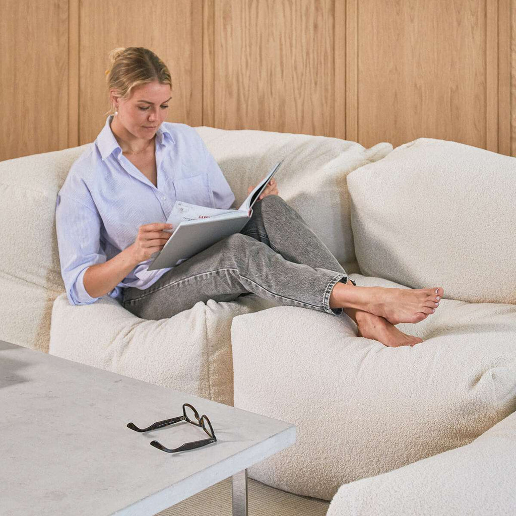 Wir empfehlen, Soft Sofa Indoor mit einem Tuch und milder Seife zu reinigen. Alternativ kannst du unseren Textilreiniger verwenden. Verwende niemals Lösungsmittel auf deinem Sofa.